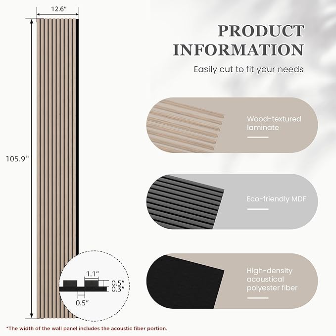 - High Quality and Safe Material: Our acoustic wood wall panels are made of high quality MDF and high density polyester. Without harmful gases, low TVOC levels, with premium sound absorption properties, protect your privacy and create a quieter environment.