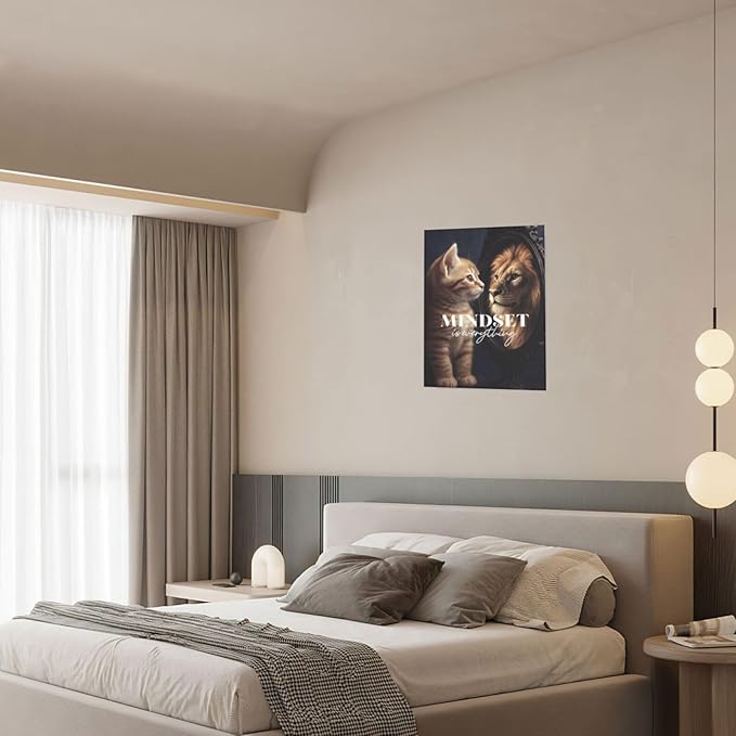 Motivational Lion And Cat Wall Art For Kids Mindset Is Everything Nursery Canvas Wall Decor Inspirational Pictures Paintings Prints Artwork Framed Decorations For Children's Room Bathroom Bedroom Living Room Office Gifts 12" x 16"