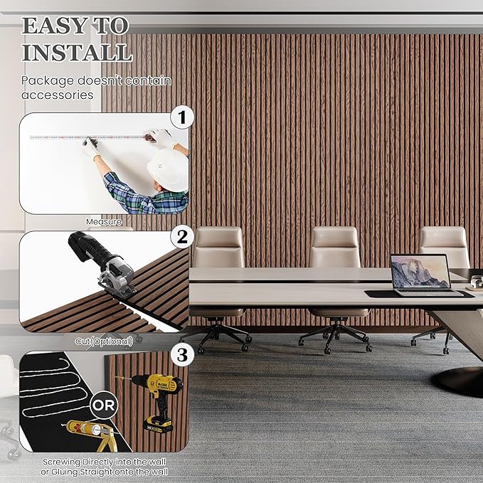 - High Quality and Safe Material: Our acoustic wood wall panels are made of high quality MDF and high density polyester. Without harmful gases, low TVOC levels, with premium sound absorption properties, protect your privacy and create a quieter environment.