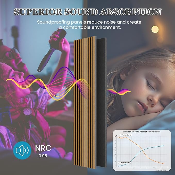 - High Quality and Safe Material: Our acoustic wood wall panels are made of high quality MDF and high density polyester. Without harmful gases, low TVOC levels, with premium sound absorption properties, protect your privacy and create a quieter environment.