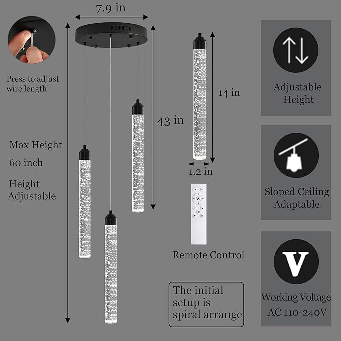 - Pre-wired and pre-threaded for quick setup! The package includes a detailed instruction manual and complete mounting kit. Install in minutes: ① Secure the mounting bracket to the ceiling; ② Assemble the crystal columns—no professional electrician required, even for beginners