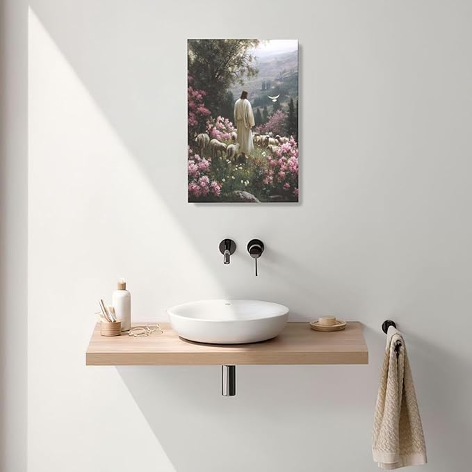Jesus Wall Art Christian Jesus Lamb Wall Decor Religious God Canvas Painting Pictures Print Christ Decorations for Living Room Bedroom Church Framed Gifts 16”X24”