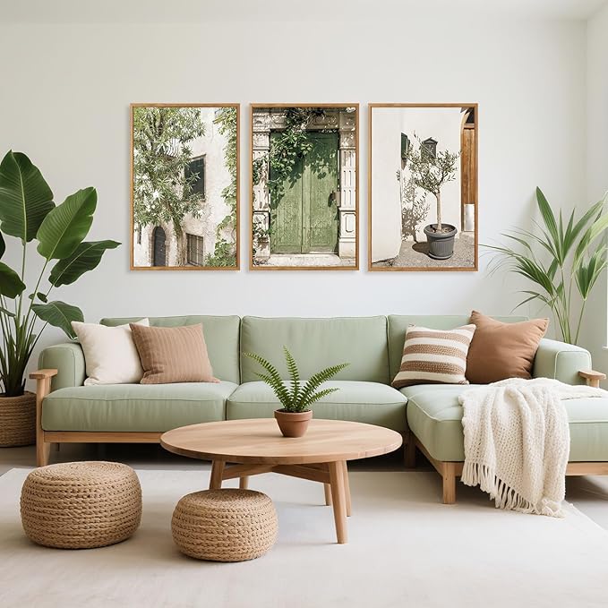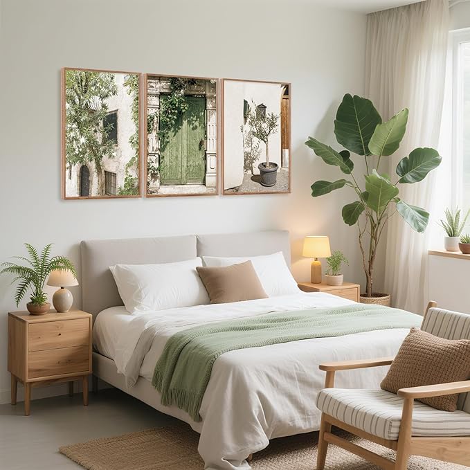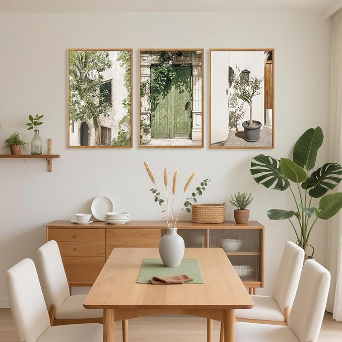- ITALIAN INSPIRED WALL ART: The decorative paintings feature a rustic, Mediterranean style with earthy Olive Green and natural elements. They skillfully integrate elements of doors, foliage, and architecture to create a fresh and inviting aesthetic that brings the charm of the Italy old world into your home.