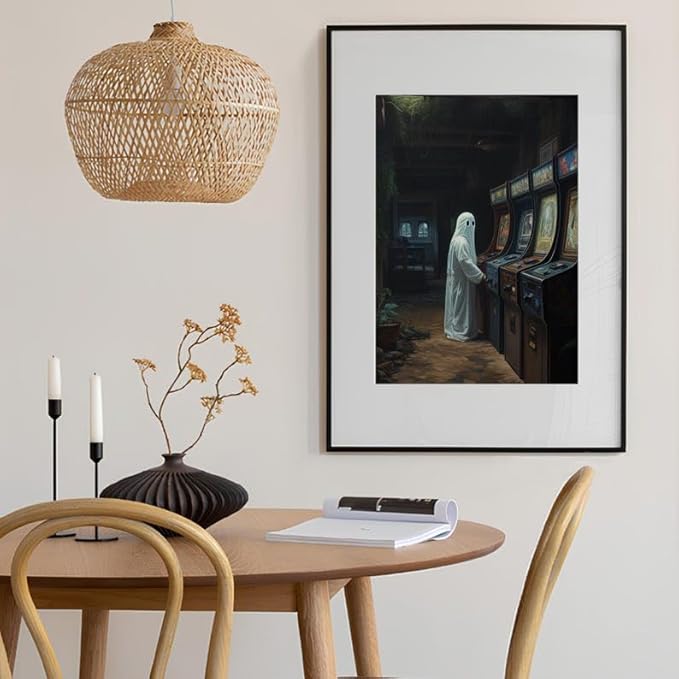 Nationcog Ghost Playing Arcade Wall Art Print – Retro Gaming Ghost Poster for Gamer Room, Halloween Decor, Spooky Aesthetic Art for Bedroom or Gaming Setup (Unframed) (9x11)