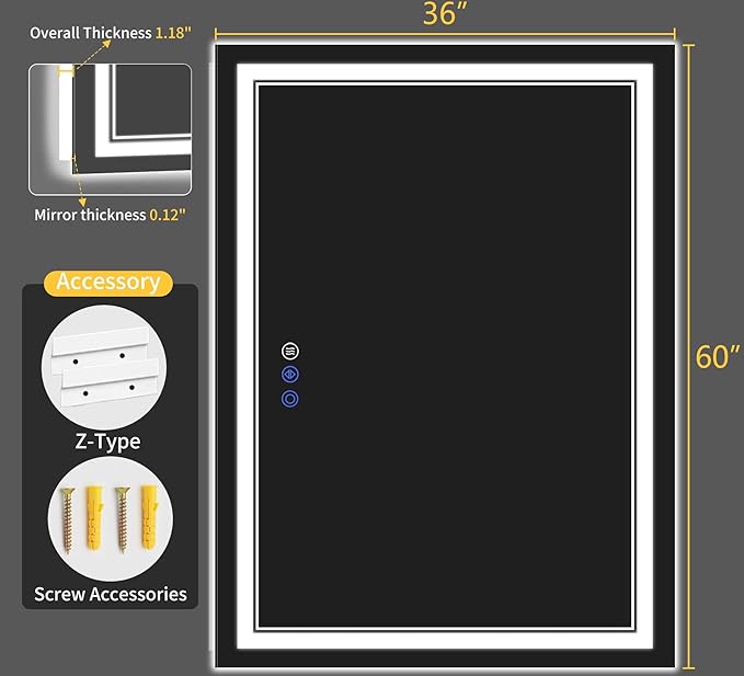 36"x60" LED Bathroom Mirror with Lights, Anti-Fog, Backlit + Front Lit, Dimmable, Led Vanity Mirror for Wall, 3 Colors, Memory Function, Shatter-Proof Tempered Glass