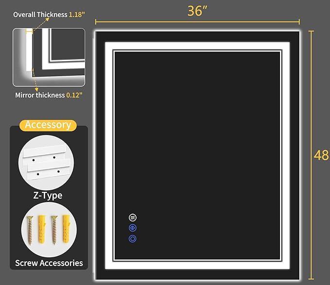- 【Anti-Fog & Defog, Auto-Off】: Fogless mirror with defog function; No bother to wipe the mirror down after a shower; Anti fog starts quick and one hour auto-off; Turn on the "Anti-fog" function before showering to always maintain a clear reflection. Turn on the "Defog"