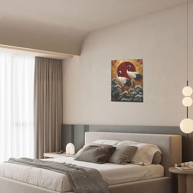 Japanese Crane Wall Art Gold Oriental Asian Wall Decor Sandhill Crane Canvas Pictures Paintings Prints Japan Traditional Aesthetic Artwork Framed Chinese Decorations For Bedroom Living Room Office Gifts 12" x 16"
