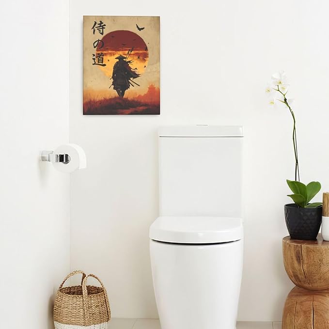 Japanese Samurai Wall Art Oriental Asian Bushido Wall Decor Warrior Figure Canvas Pictures Paintings Prints Japan Traditional Aesthetic Artwork Framed Decorations For Bedroom Living Room Office Gifts 16" x 20"