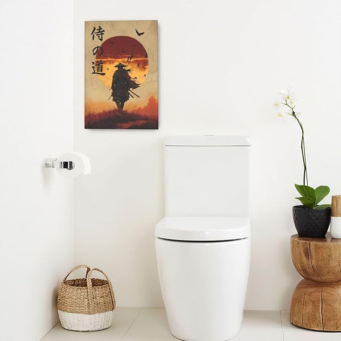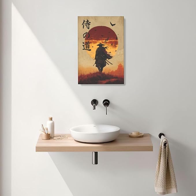 Japanese Samurai Wall Art Oriental Asian Bushido Wall Decor Warrior Figure Canvas Pictures Paintings Prints Japan Traditional Aesthetic Artwork Framed Decorations For Bedroom Living Room Office Gifts 16" x 24"