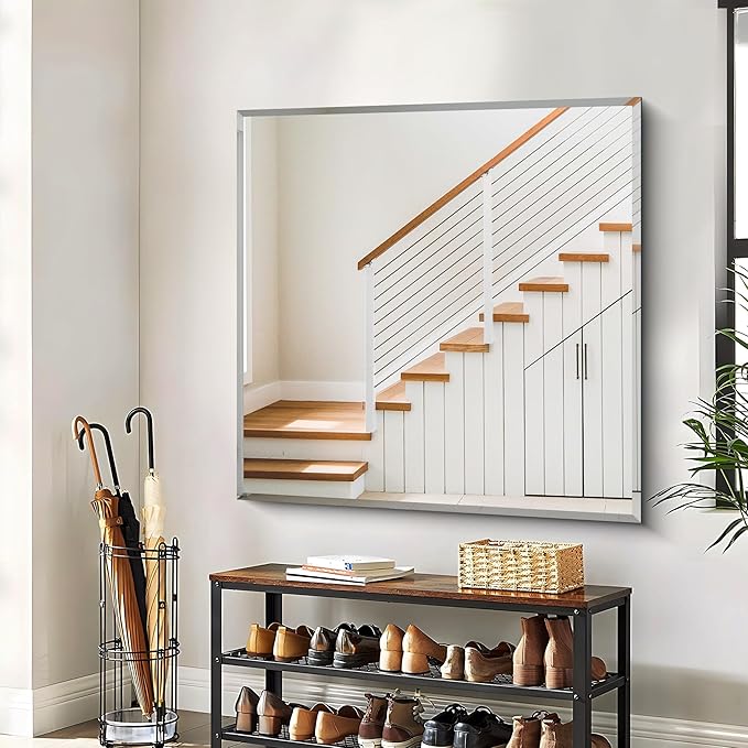 - Effortless Installation: Say goodbye to complicated setups. With included wall-mounted hardware, our beveled square mirror can be securely and effortlessly installed in just a few minutes. Whether you prefer a vertical or horizontal orientation, our mirror adapts seamlessly to your needs. Save time and start enjoying your mirror sooner with easy and quick installation