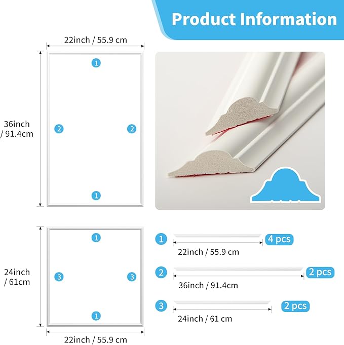 - Easy Installation - Premade peel and stick moulding trim kit ensuring effortless application and flexible installation on wall