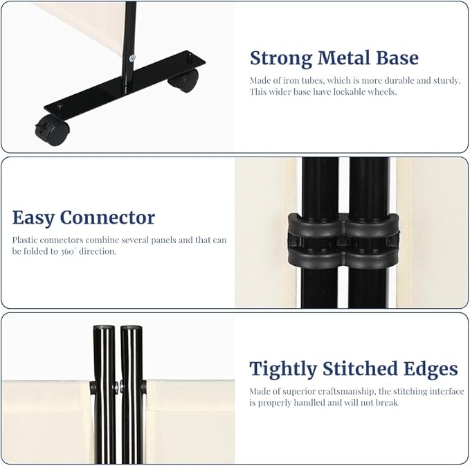 - Sturdy Iron Frame & Flexible Folding: The room divider panel is assembled from sturdy iron tubes and thick fabrics. 180gsm coated polyester fabric is thick enough to block most of the light and shadows, giving you the best privacy protection. This temporary wall divider comes with 6 lightweight panels, each panel is connected by flexible connectors so you can fold them to create different structures