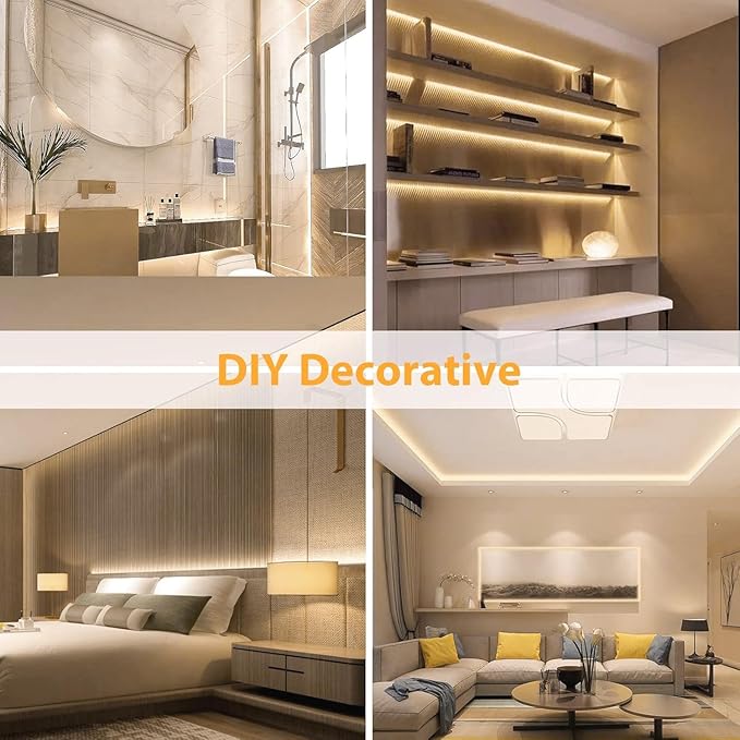 - 【Widely Use】- The dimmable LED light strip suitable for kitchen cabinet lighting, vanity lights, TV backlights, hallway, living room, staircase, bar, shop window, bookcase, display cabinet, pantry, workbench light up a beer sign, and almost anywhere