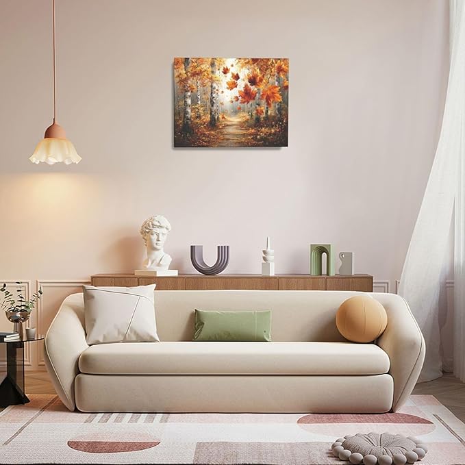 Maple Leaves Wall Art Fall Tree Wall Decor Maple Tree Pictures Forest Landcape Canvas Painting Prints Artwork Decorations for Living Room Bedroom Bathroom 16”X20”