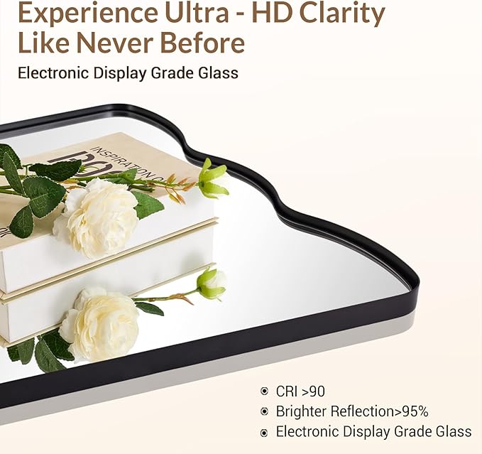 - Crystal-Clear Reflection: Experience exceptional clarity with high-definition silver glass that delivers a perfect, undistorted reflection. The deep matte black frame offers understated elegance and is built to last. The easy-to-clean surface maintains its pristine look with minimal effort.