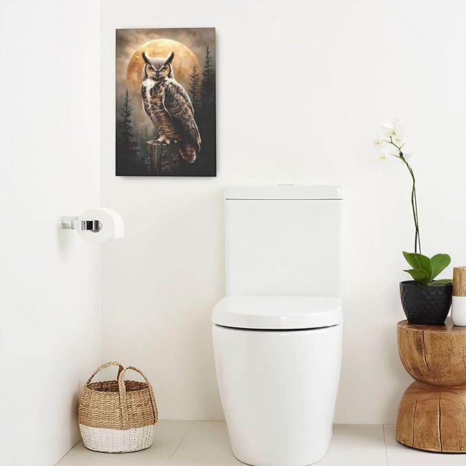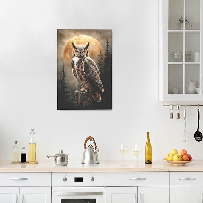 Cabin Owl Wall Art Moon and Forest Canvas Wall Decor Rustic Animal Pictures Paintings Prints Mystical Wildlife Artwork Framed Decorations For Bathroom Bedroom Living Room Office Gifts 16" x 24"