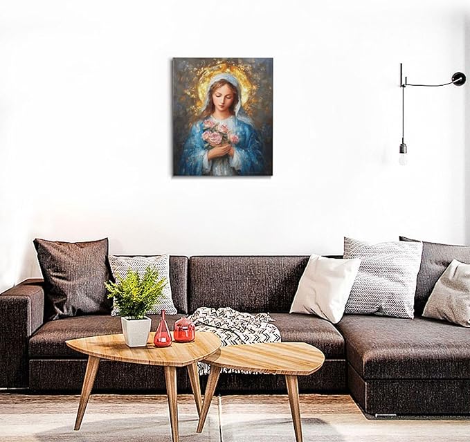 Christian Mary Wall Art Mary Mother Of God Canvas Wall Decor Catholic Blessed Mother with Roses Pictures Christ Paintings Prints Religious Bible Artwork Framed Decorations For Church Prayer Room Chapel Bathroom Bedroom Living Room Gifts 20" x 24"