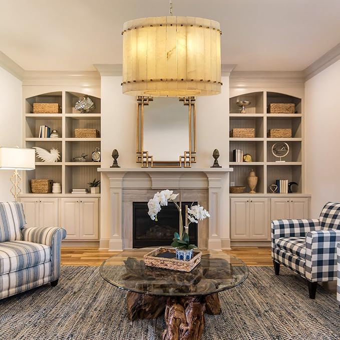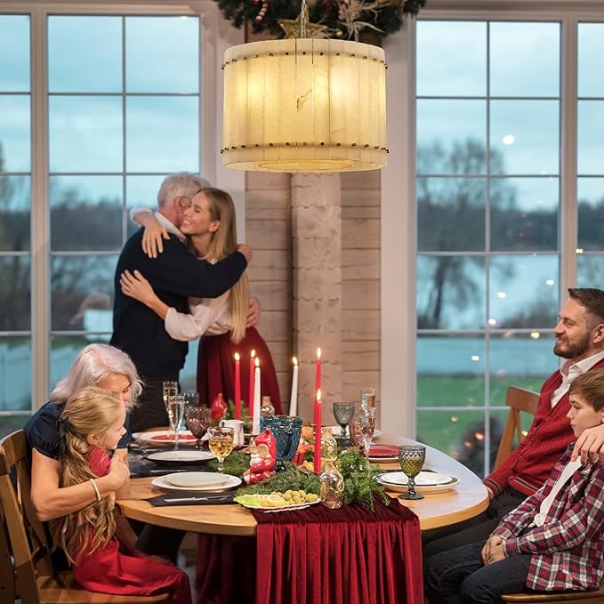 - 【Unique Alabaster Chandelier】Crafted from exquisite natural Spanish alabaster stone, this round chandelier showcases the artistic beauty of nature. Each piece is unique, adding a rustic yet luxurious touch to your modern dining room or living space.