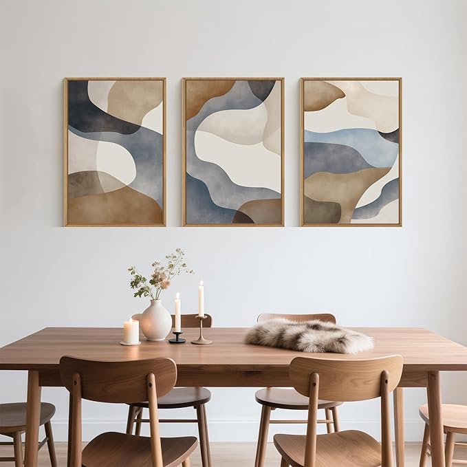 - 【Effortless to Display】The framed modern boho tan and blue wall art set includes three pieces, each measuring 24×36 inches×3pcs (60×90cm×3pcs). We provide a complete hanging kit, making it easy for you to hang the artwork when it arrives. Simply measure your wall space and effortlessly display the art.