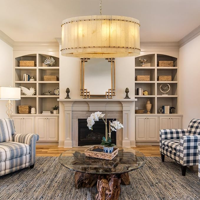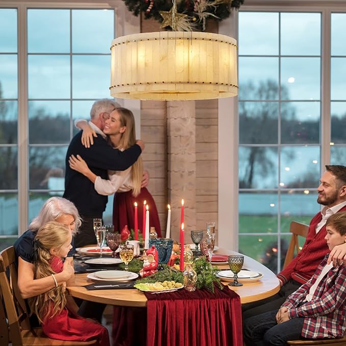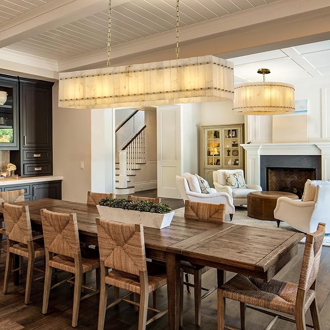 - 【Unique Alabaster Chandelier】Crafted from exquisite natural Spanish alabaster stone, this round chandelier showcases the artistic beauty of nature. Each piece is unique, adding a rustic yet luxurious touch to your modern dining room or living space.