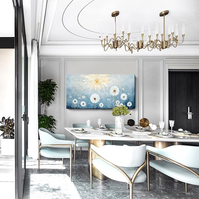 - ★ Creating a Peaceful, Uplifting Atmosphere: This 58x29 inch extra large wall art showcases delicate white dandelions drifting gently across a soft blue background, touched by golden sunlight. Representing dreams, hope, and new beginnings, it brings peace, freedom, and inspiration to any space.