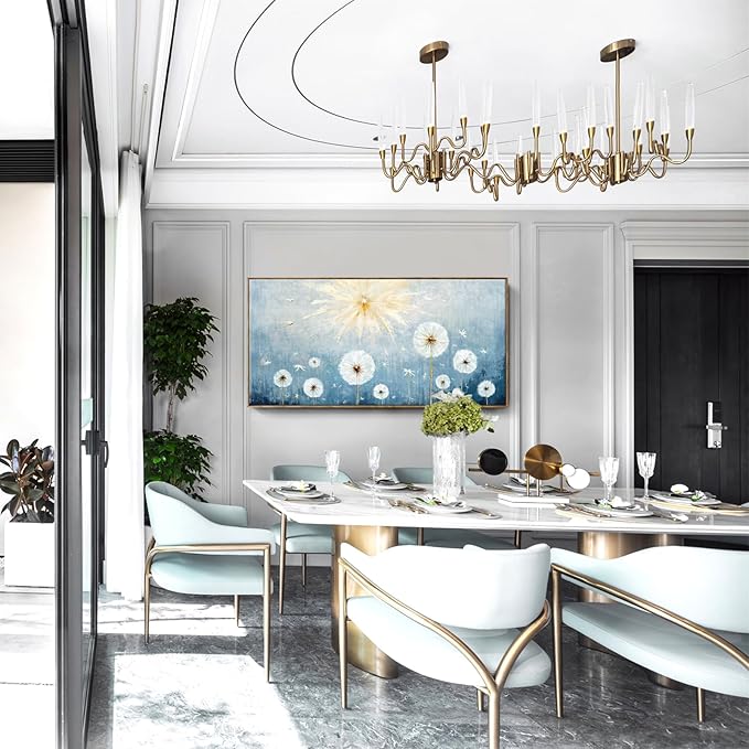 - ★ Creating a Peaceful, Uplifting Atmosphere: This 58x29 inch framed canvas art showcases delicate white dandelions drifting gently across a soft blue background, touched by golden sunlight. Representing dreams, hope, and new beginnings, it brings peace, freedom, and inspiration to any space.