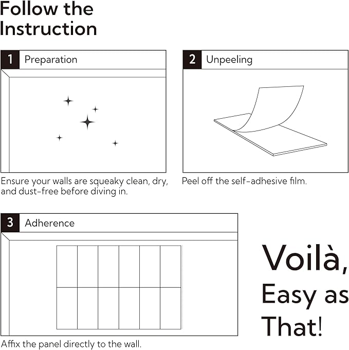 - Easy Peel and Stick Setup, No Tools Required: Each self adhesive wall panel includes strong adhesive backing, so these sound panels are used for quick DIY installation. Just peel, stick, and arrange to cover walls, doors, or ceilings,fully customizable. These acoustic wall panels are Ideal for subtle, natural decor while maintaining a clean, contemporary look.