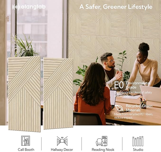 - Modern Acoustic Treatment, Designed Your Way for Every Space: Available in multiple designs, Olanglab wall panels are easy to cut and install. These sound panels fit recording studios, offices, classrooms, gaming rooms, and living spaces, reducing echoes and creating a more comfortable environment for work, play, or relaxation—exactly the way you need.