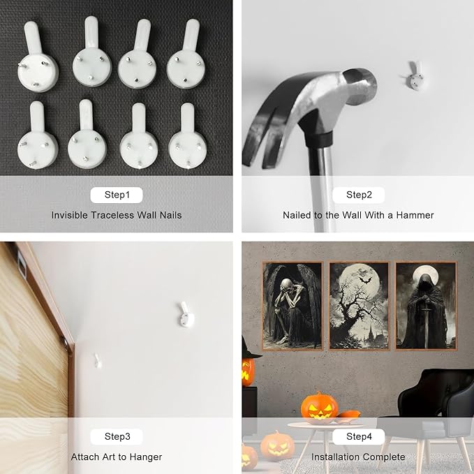 - Versatile Multiple Settings:This set of Halloween decorations is perfect for multiple spaces, including living rooms, dining rooms, fireplaces, staircases, and galleries. Whether hung individually or arranged freely, these artworks perfectly capture the playful essence of Halloween, adding a touch of eeriness to your space