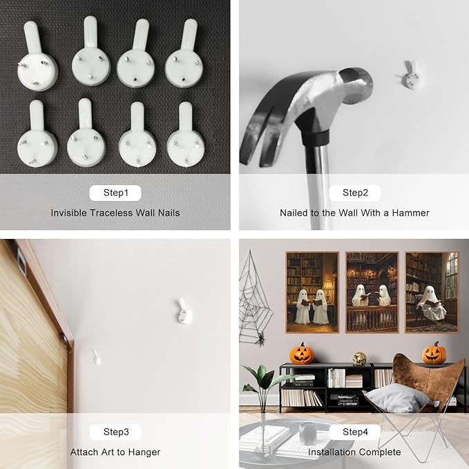 - Easy To Display:This moody ghosts decor can be easily hung in any room you like, making it very convenient. The unique print captures the essence of creepy and romantic. Pair it with the included invisible nails for a seamless hanging experience, effortlessly creating Halloween decor magic