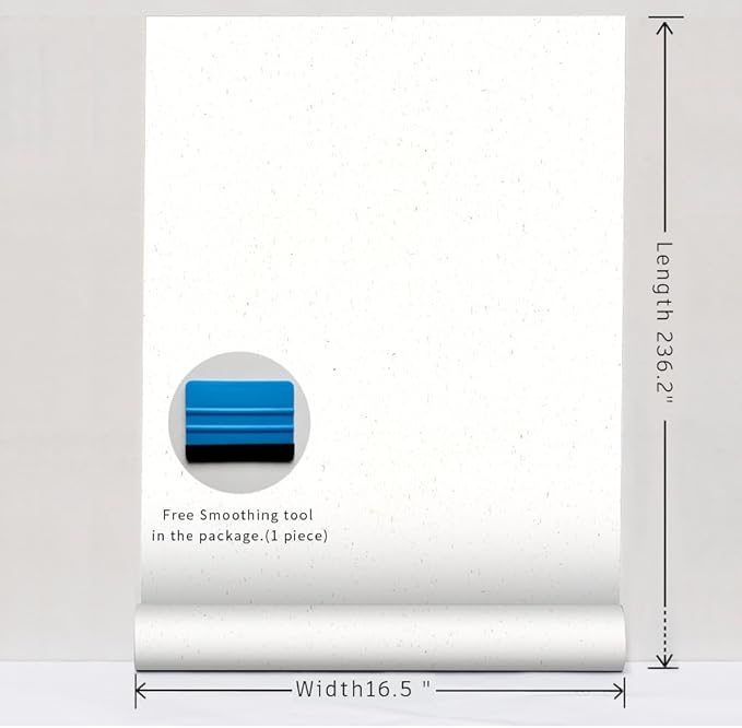 - Totally 4 layers of our material: 1.Waterproof and anti-stain protective layer. 2.Less herbaceous coffee fusion in paint. 3.Non-woven fabrics. 4.Self-adhesive sticker. Full size: width 16.5”x length 236.2",package size:3.38”x3.38”x17.1”. Free Smoothing tool in the package.(1 piece)