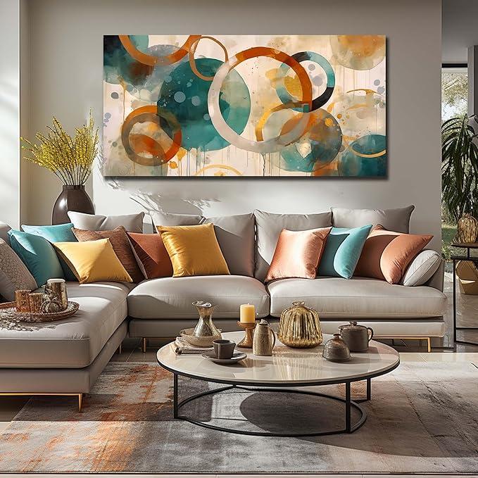 CANEITO Abstract Wall Art for Living Room, Circle Canvas Wall-Decor for Bedroom, Geometric Print Artwork, Size 59 x 29 Inches