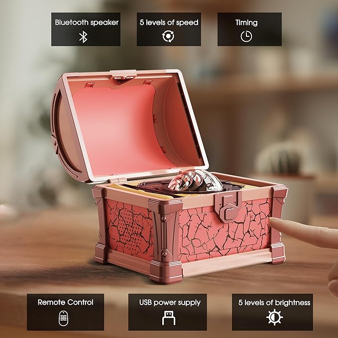 - Treasure Chest Northern Lights Projector: Enchanting treasure chest design. Opening the lid activates Galaxy Projector mode, casting 360° enchanting Northern Lights that dance across ceilings/walls. Close the lid for Night Light Mode’s warm night light, creating a magical atmosphere. Ideal room decoration offering a captivating Northern Lights experience for families