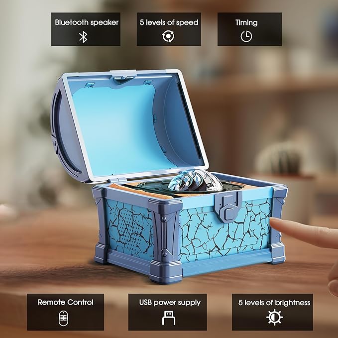 - Treasure Chest Northern Lights Projector: Enchanting treasure chest design. Opening the lid activates Galaxy Projector mode, casting 360° enchanting Northern Lights that dance across ceilings/walls. Close the lid for Night Light Mode’s warm night light, creating a magical atmosphere. Ideal room decoration offering a captivating Northern Lights experience for families