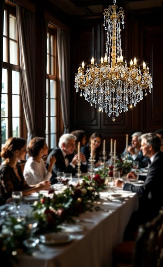 - Classic French Empire Design:Inspired by timeless French elegance, this luxury crystal chandelier features tiered crystal layers and candle-style lights. Fully dimmable when used with compatible dimmer switch and bulbs (24 × E12 base, Max 60W, bulbs not included).