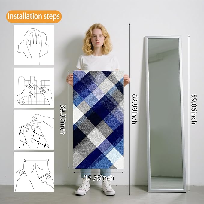 Nuxovilar Blue Plaid Checkered Textured Peel and Stick Wallpaper, 15.75"x39.37", Self-Adhesive Contact Paper, Classic Tartan Design for Bedroom, Living Room and Table Decor