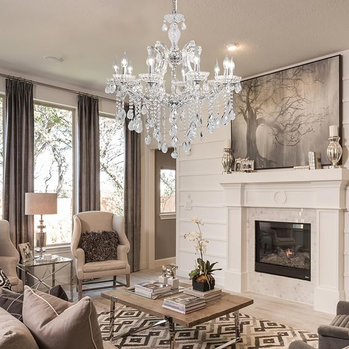 - 【E12 Bulb*10 Required Chandeliers】 Our elegant crystal light with 10pcs E12 lamp holder(Bulb Not Included), compatible with E12 LED bulb, Incandescent, energy-saving, halogen, etc. (60w max) Fully dimmable when used with dimmable bulbs and a compatible dimmer switch, not included.