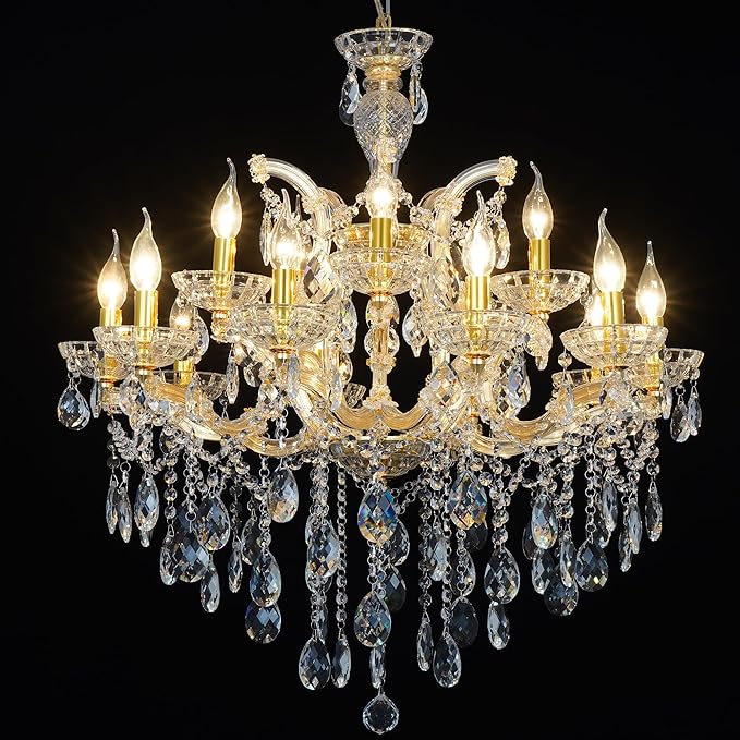 - 【E12 Bulb*15 Required Chandeliers】Our brilliant maria theresa crystal chandelier with 15pcs E12 lamp holder(Bulb Not Included), compatible with E12 LED bulb, Incandescent, energy-saving, halogen, etc. Fully dimmable when used with dimmable bulbs and a compatible dimmer switch, not included.
