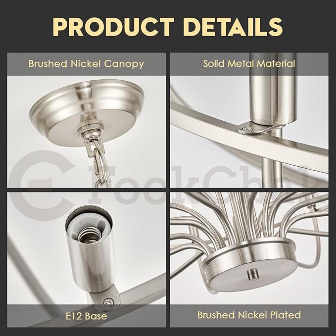 - Durable Nickel Candle Chandelier -FookChak high ceiling foyer chandelier, crafted from premium metal and finished with anti-rust brushed nickel painting, is built to last. This large dining room chandelier not only ensures durability but also maintains its sophisticated appearance over time, adding enduring charm to both residential and commercial interiors such as restaurants, hotels, and lobbies.