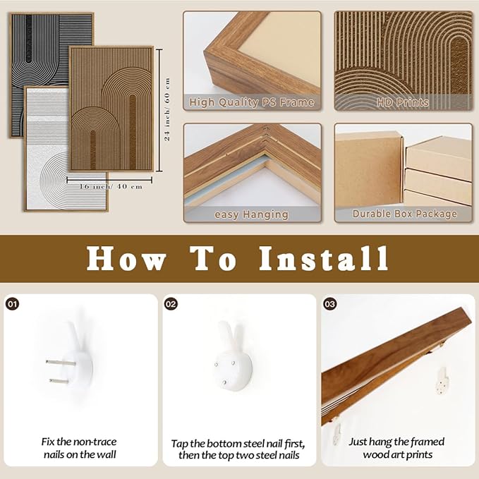 - 【Size】neutral abstract wall art approximate dimensions is 16x24 Inches.