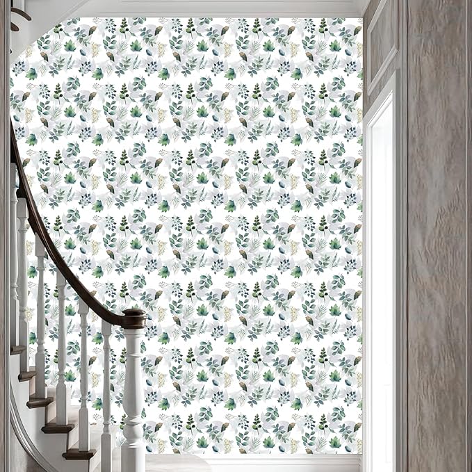 - Green leaf wallpaper: This green floral peel and stick wallpaper design adopts the shape of leaves.It can be used in a variety of setting such as bathrooms, living rooms,cabinets,bedrooms, laundry rooms,drawers, shelf liner, bookshelves, closet shelving,farmhouse,pantry, nursery, kitchen, office, classrooms and any smooth and flat surfaces that you want to put on