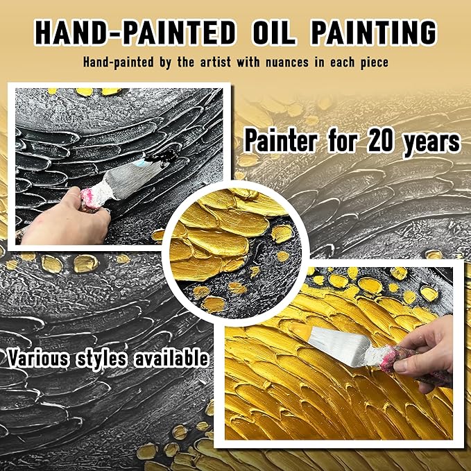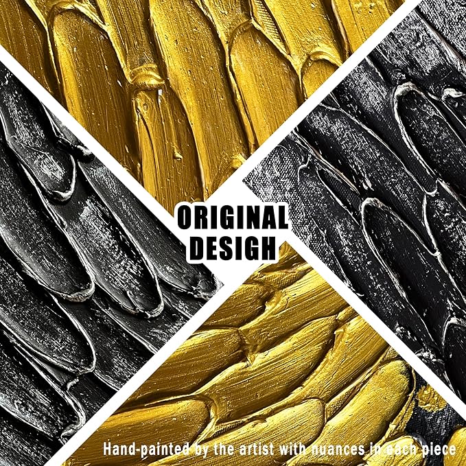 - 【Black And Gold Abstract Canvas Mural Size】The size is 20" x 40". Since each painting is hand-painted, 3D textured canvases,the actual painting may differ slightly from the product image. Due to different monitor brands, the actual wall painting color may be slightly different from the product picture.