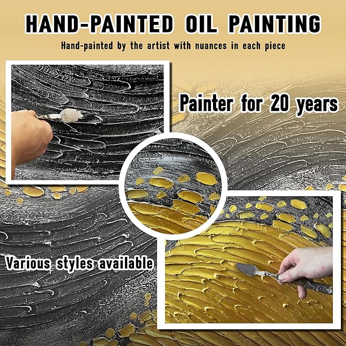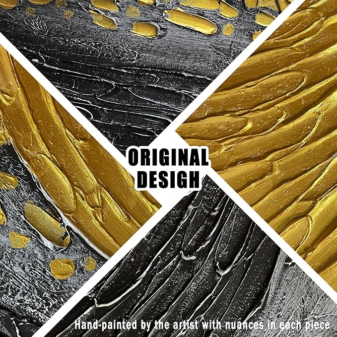 - 【Black And Gold Abstract Canvas Mural Size】The size is 24" x47". Since each painting is hand-painted, 3D textured canvases,the actual painting may differ slightly from the product image. Due to different monitor brands, the actual wall painting color may be slightly different from the product picture.