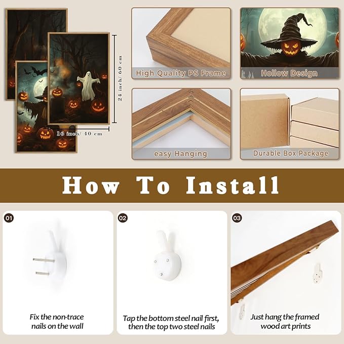 - 【Easy to Hang】This Halloween forest wall art set is 16x24 inches in size and comes with installation tools, making the process easy. All you need to do is measure the wall dimensions in advance and simply hang the painting on the wall after receiving it!
