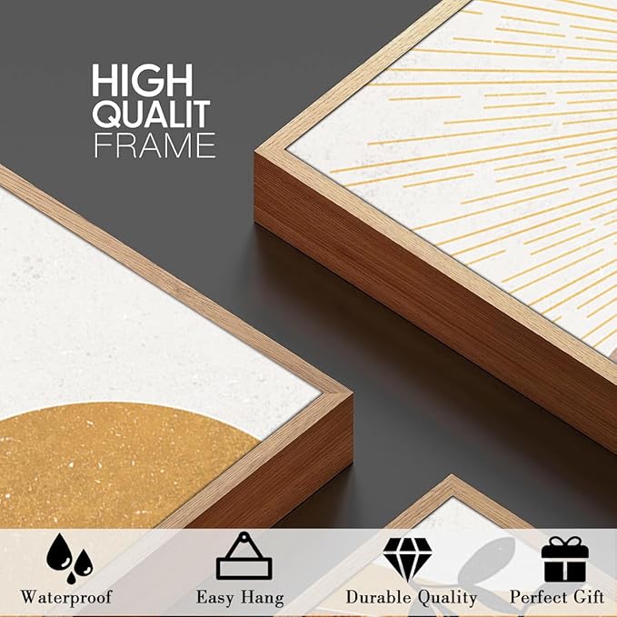 - 【Mid Century Modern Wall Art Design】This boho wall art blends elements such as the sun, plants and lines, creating a bright and cheerful atmosphere. The overall design is both brimming with artistic vitality and embodying a serene beauty, bringing a unique visual enjoyment to your space.
