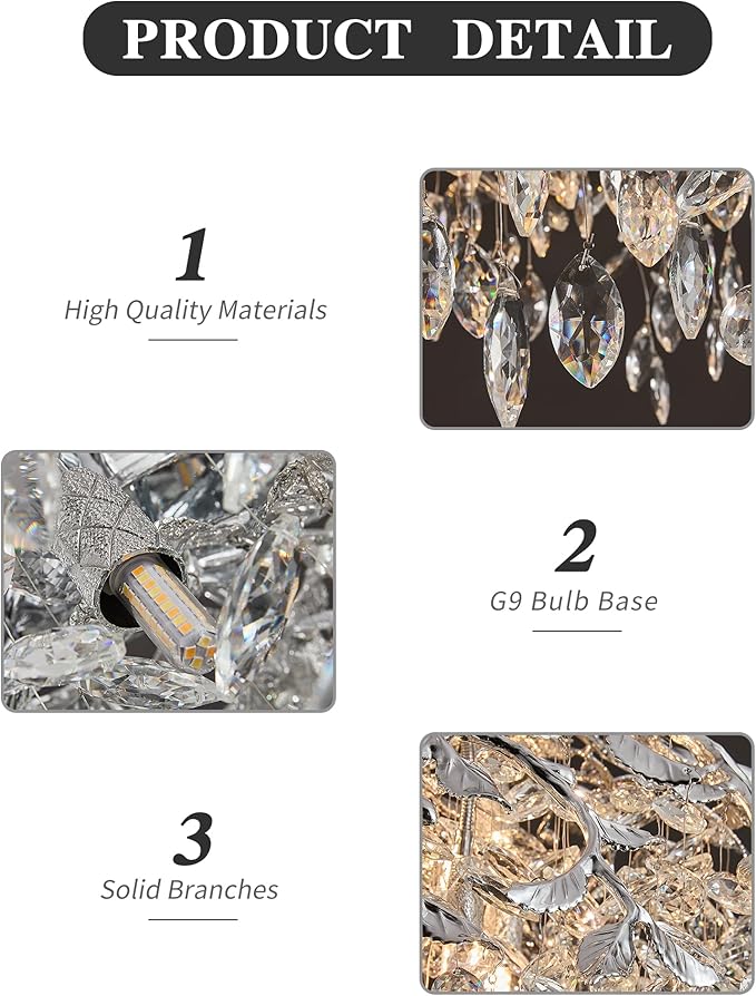 - Widely used: This crystal chandelier is perfect for dining rooms, living rooms, kitchen islands, bedrooms and anywhere else