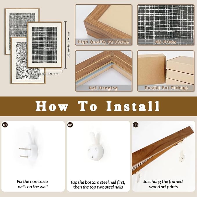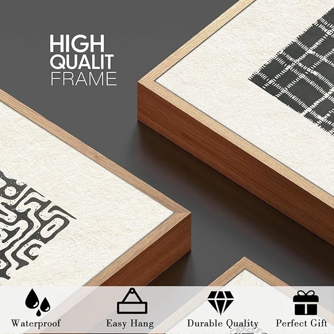 - 【Modern Neutral & Premium Quality Material】This modern minimalist wall art is made of high quality waterproof canvas material. It uses high definition professional printing technology to present the colors of the paintings clearly and accurately. It is equipped with a PS frame and a sturdy backboard, which not only adds a retro charm to the work but also provides better protection for the painting.