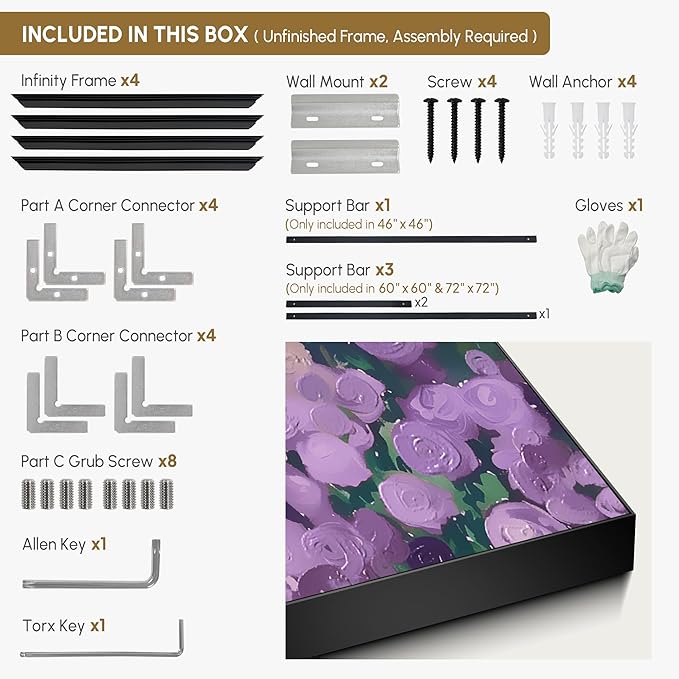 - Assembly Required: The frame print is unfinished frame and assembly required, it is easy to set up. We recommend two people for an easy, accurate setup, ensuring secure and stable hanging.