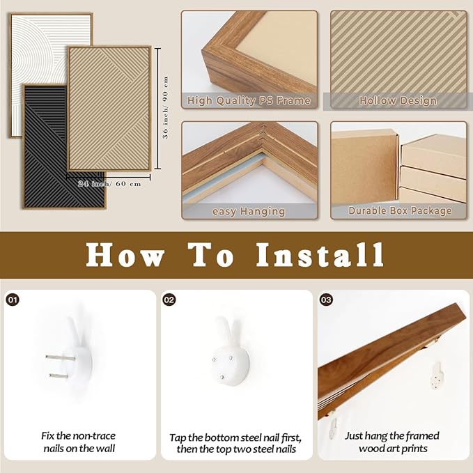 - 【Large Boho Wall Decor & Premium Quality Material】This modern neutral wall art is made of thick canvas material,and the printing process uses high-quality ink to ensure that black wall art are durable and not easy to fade.The smooth and high-quality wooden frame makes the canvas more solid.