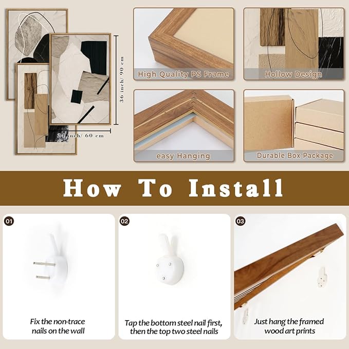 - 【Size & Easy Hang】Each neutral modern artwork is 24x36 inch. Each pair is equipped with nails and buckles that are easy to install and hang. Installation completed in 2 minutes